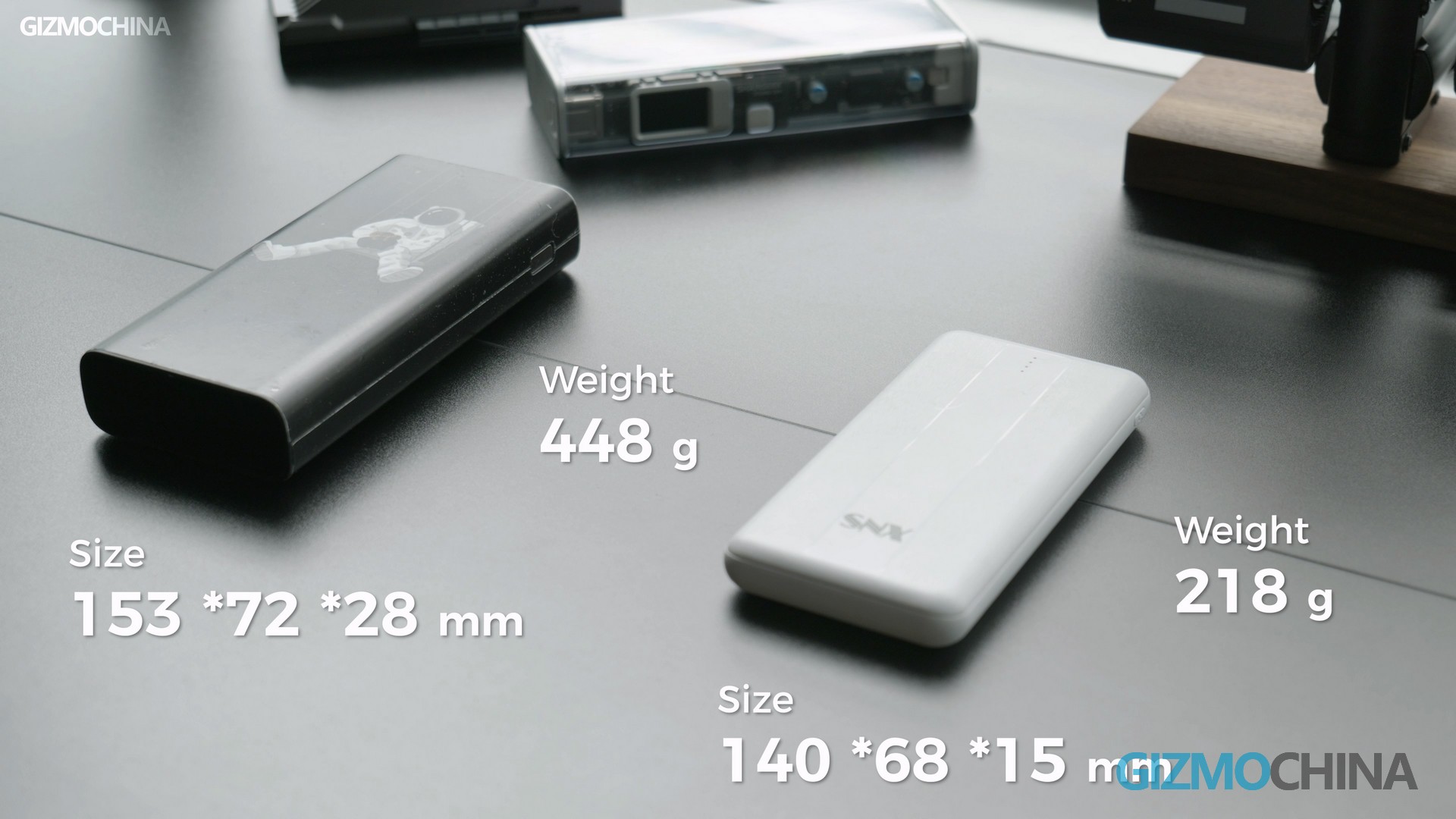 Let’s put some power banks with this one side by side, to see how it really helps you with the charging need on the road. This is the Xiaomi 20000mah power bank, it measures 153*72*28, it weighs 448g. Same as most of its kind, it looks and feels like a brick. This one is the 20W power bank, it measures 140*68*15 and weighs 218g, is very light and it is still big. These power banks have been my go-to items when it comes to business trips and daily commutes, but not until I have this one, the Mchaos power bank.