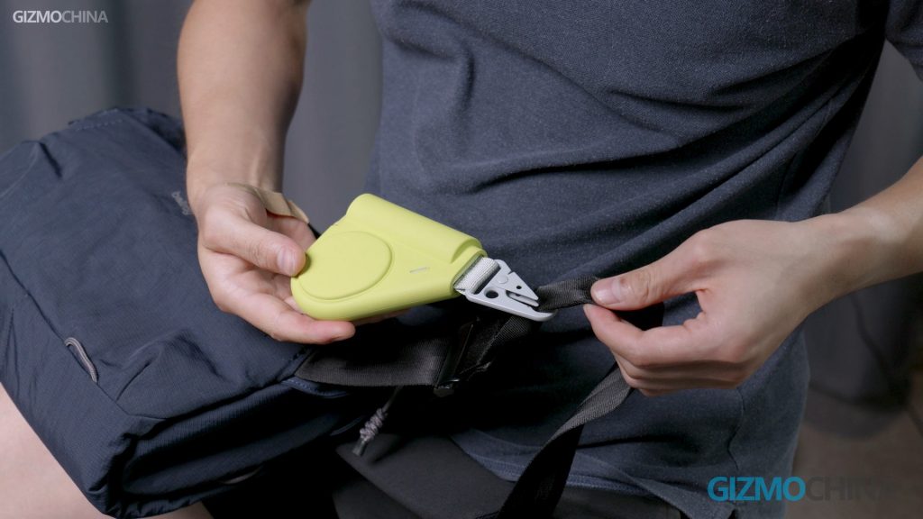 Clearly, it has a very chic design to it, the rectangular shape and skin-friendly surface make holding it extremely pleasant and intuitive. However, it is actually not quite meant to be held in hand anyway, because whenever you go out, you can just grab it and with a simple click, walah, the power bank is just on the backpack. Or if you are a true minimalist and do not carry too many items with you, it can also be attached to your sling.