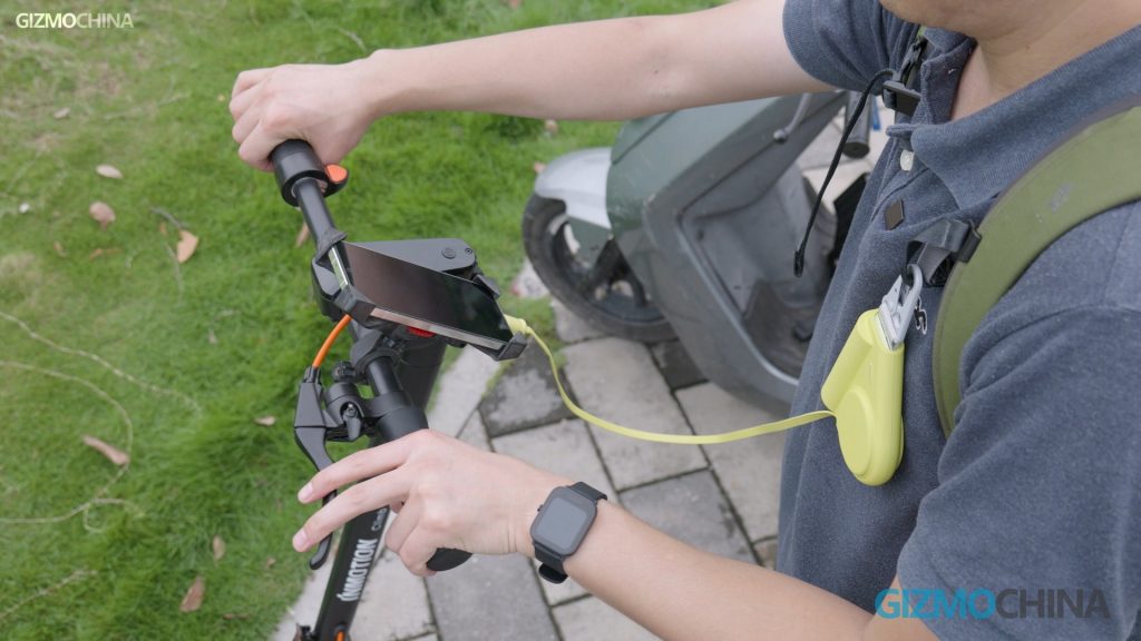 And if you are wondering, what is it like if I am a PEV lover and I want to use it while riding my electric bike? Well, we have tested them, here we have an electric scooter, a motorbike, and another moped. As you can see, all the handlebars of these PEVs are designed within your reach, so the length of the cable is more than enough for this situation. And once your phone is attached to the bikes, they are bundled nice and snug. No matter how the vehicle moves, the cable is flexible enough to keep up with it.