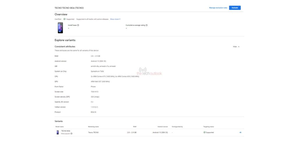 Tecno Spark Go 2024 Google Play Console listing