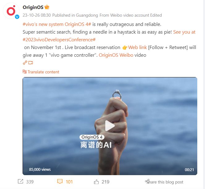 As Vivo’s Origin OS 4 launch is nearing, the company started teasing the new Android 14-based OriginOS 4 features on Weibo. The company is scheduled to announce the new OS at the 2023 Developer Conference in Shenzen on November 1st. Following the upcoming launch, the company teased its upcoming “Jovi CoPilot” assistant feature via a new video teaser.