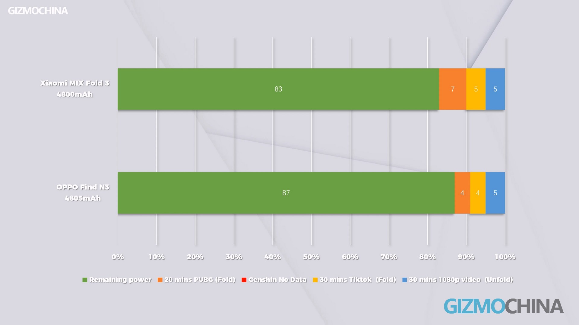 The 67W of charging power isn’t particularly good, but it’s above the pass line, and you can get a full charge in 40 minutes. Not being able to support wireless charging would be a small shame for me, the good thing is that the battery life is good. It’s much better than the MIX Fold 3 in light-load gaming. It seems the Find N3 battery life is not too much to worry about.