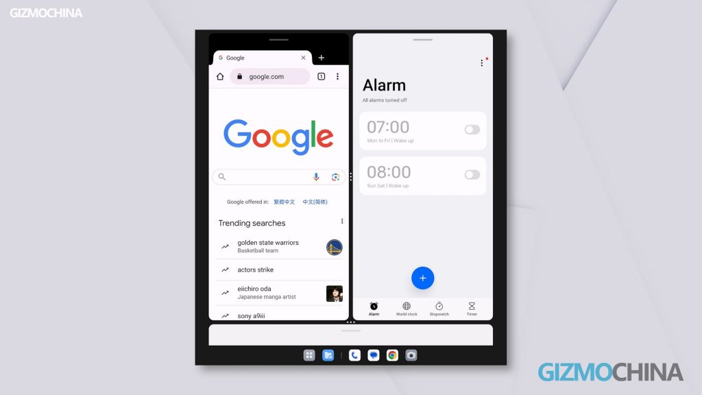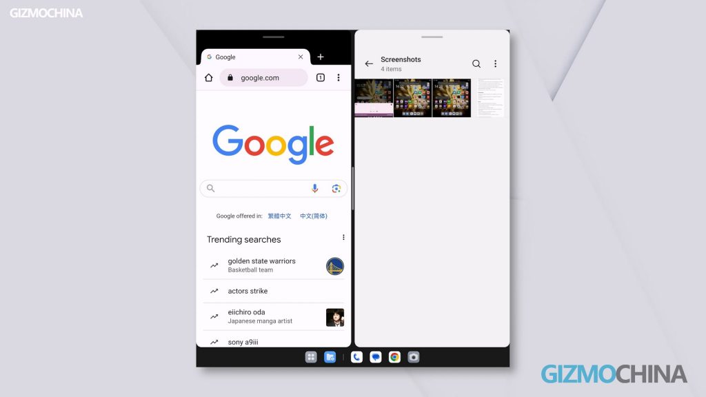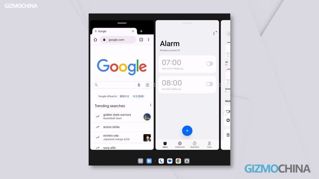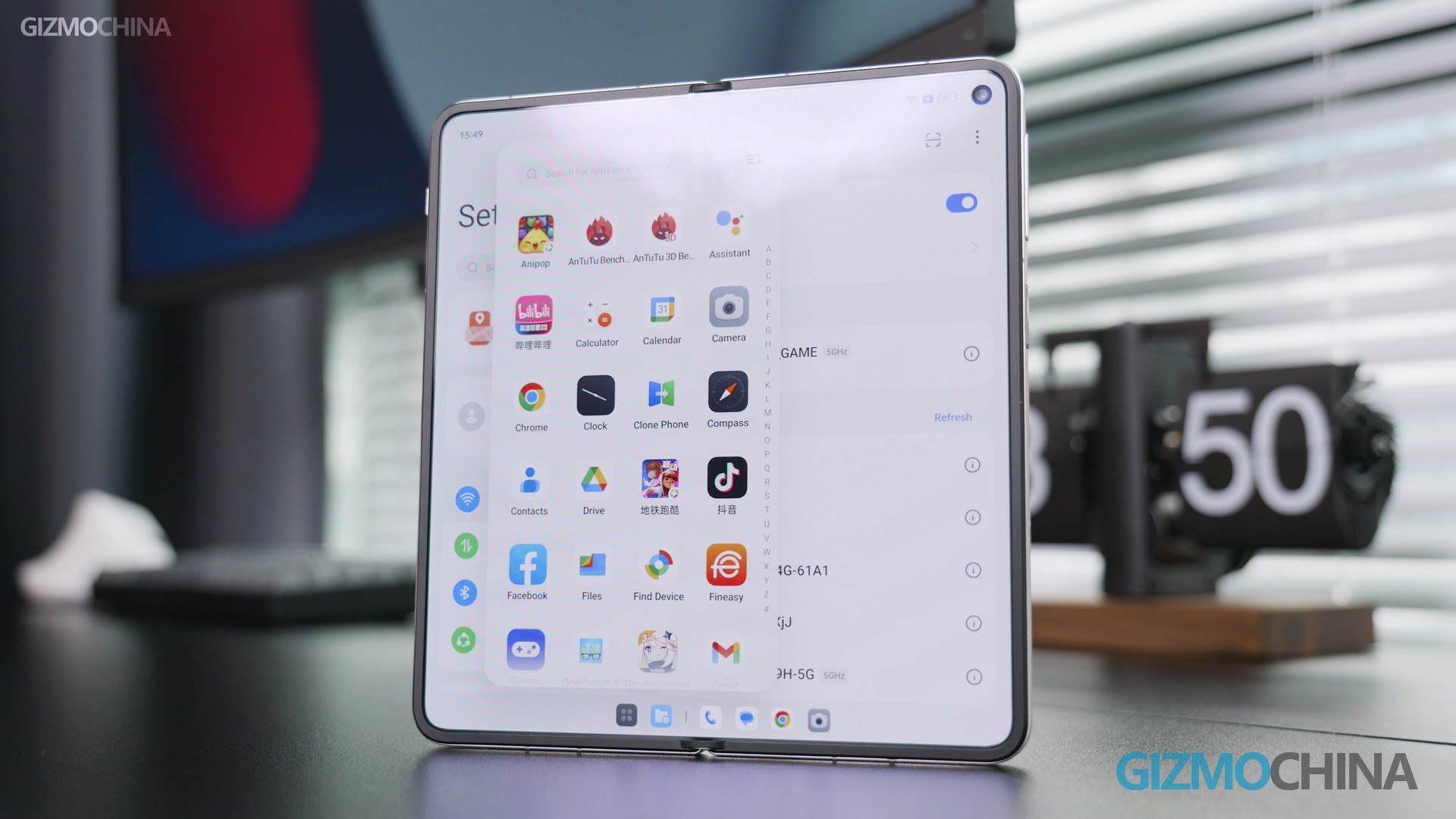ColorOS 13 adds a couple of new split-screen features specifically for the Find N3. First up is this very familiar Taskbar, where OPPO has brought PC control logic to the N3—the button at the very left looks like the Windows Start menu with all the apps in it.