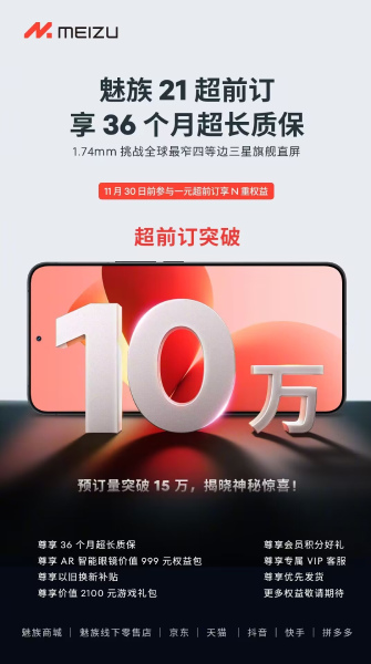 The pre-booking for the Meizu 21 series ends at 16:59 (GMT +8) on November 30.