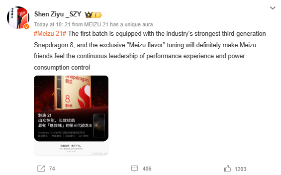 In the latest update from Shen Ziyu, chairman and CEO of Xingji Meizu Group, Meizu enthusiasts have been teased with exciting details about the upcoming Meizu 21 smartphone. Set to be the first device equipped with the Snapdragon 8 Gen 3 processor, the Meizu 21 promises a unique touch with its “exclusive” Meizu-level optimization.