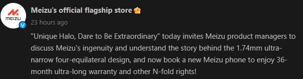 The grand unveiling is scheduled to take place at the #2023 Meizu Autumn Unbounded Ecosystem Conference# at 14:30 on November 30. Meizu has extended an invitation to 1,500 lucky users to witness the event live at the Wuhan Economic Development Zone, where the headquarters of Meizu Group is located.