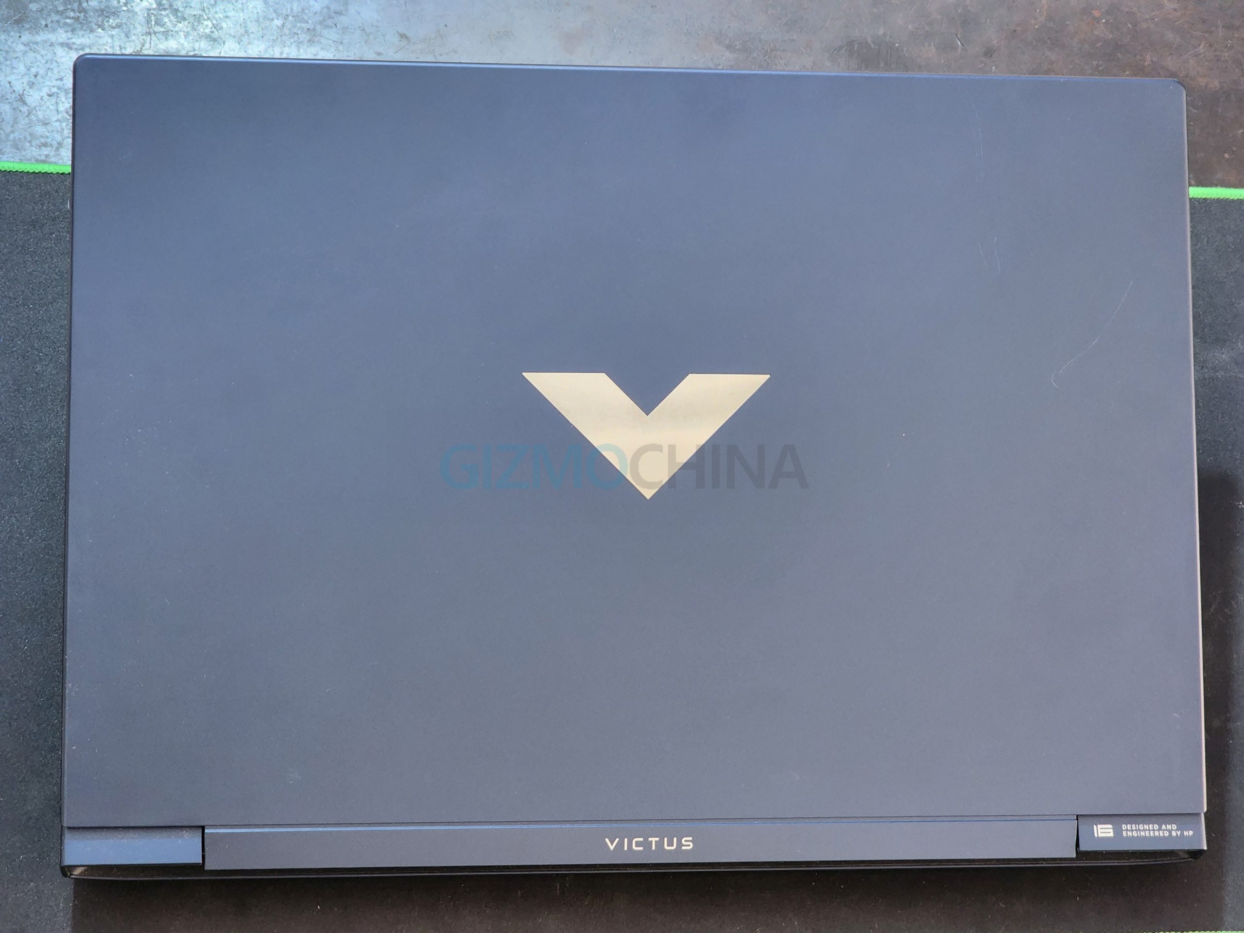 The HP Victus 16 (2023) boasts a polycarbonate construction that feels sturdy but is on the heavier side, weighing 2.31 kg. The weight is primarily due to its large 16-inch display and capacious battery. The Performance Blue-colored device features a “V” logo on the lid, and its left and rear sides house the ports and air vents. The laptop’s hinge is solid, ensuring a stable screen without any noticeable wobbling.