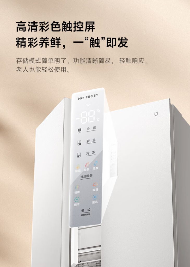 The refrigerator also offers convenient features such as a 90° right-angle door opening and a bottom-front heat dissipation system. Additionally, the ice feather white natural texture panel not only adds to its visual appeal but also provides practical benefits like resistance to oil, ease of cleaning, and durability.