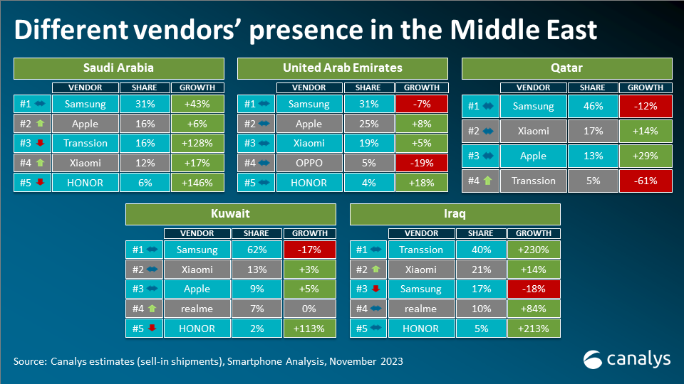 “TRANSSION is steadily increasing its footprint in response to the expanding mass-market segment amid broader economic uncertainties. Infinix introduced exclusive models with Noon in Saudi Arabia, while Tecno promoted its Camon 20 with enhanced incentives in Iraq. While Xiaomi and HONOR strive to penetrate the premium market with enticing incentives and aggressive promotions, luring customers away from established brands demands persistent investment,” reveals Manish Pravinkumar, Dubai-based Senior Consultant at Canalys.