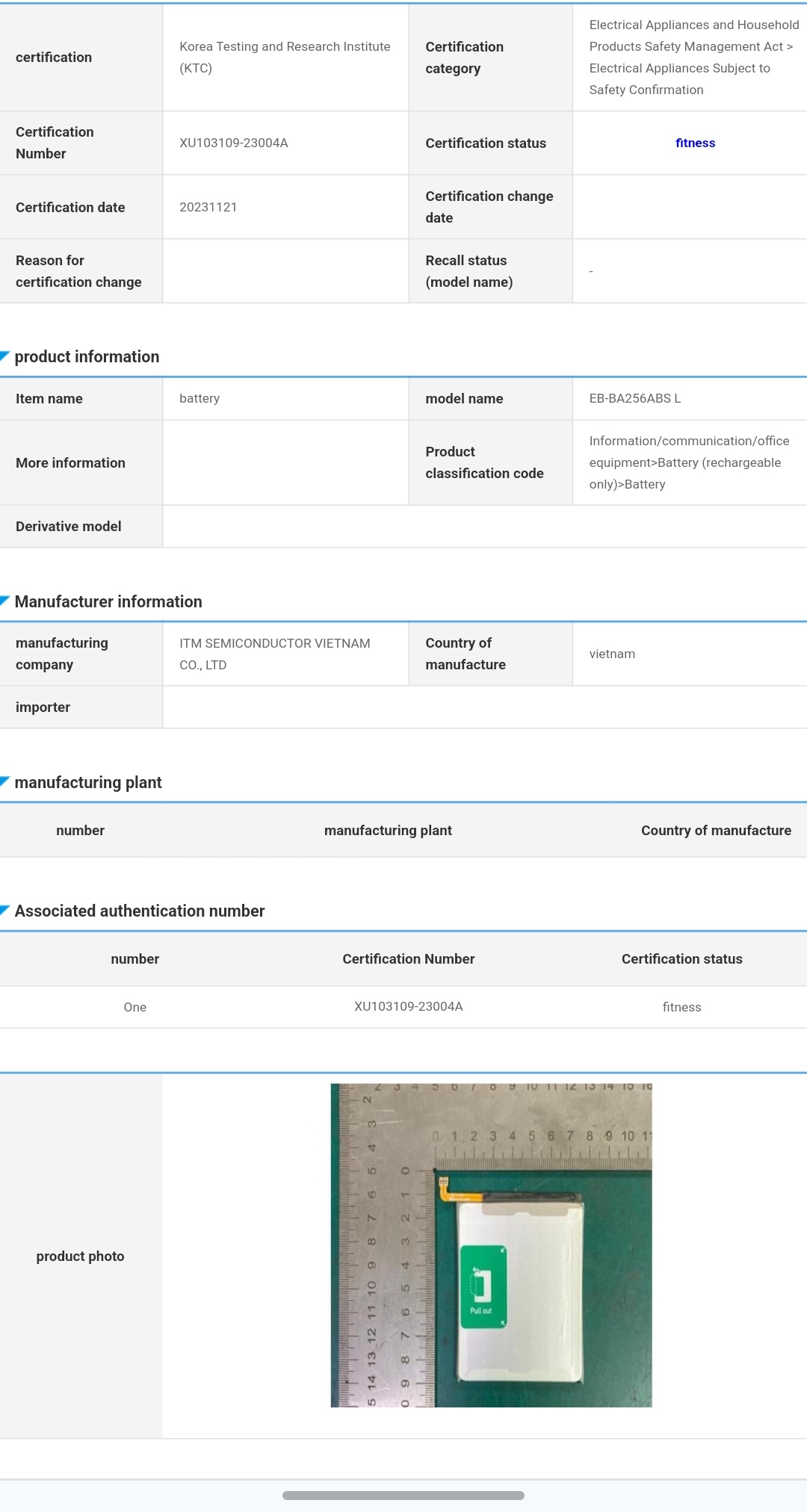 The battery with model code EB-BA256ABS appeared on the website along with its photo but sans any details like capacity, power rating, etc. However, these certifications ensure the upcoming launch of the device. The new smartphone also appeared on Singapore’s IMDA, which confirmed support for NFC. It even bagged TUV Rheinland and GCF certification a few weeks ago.
