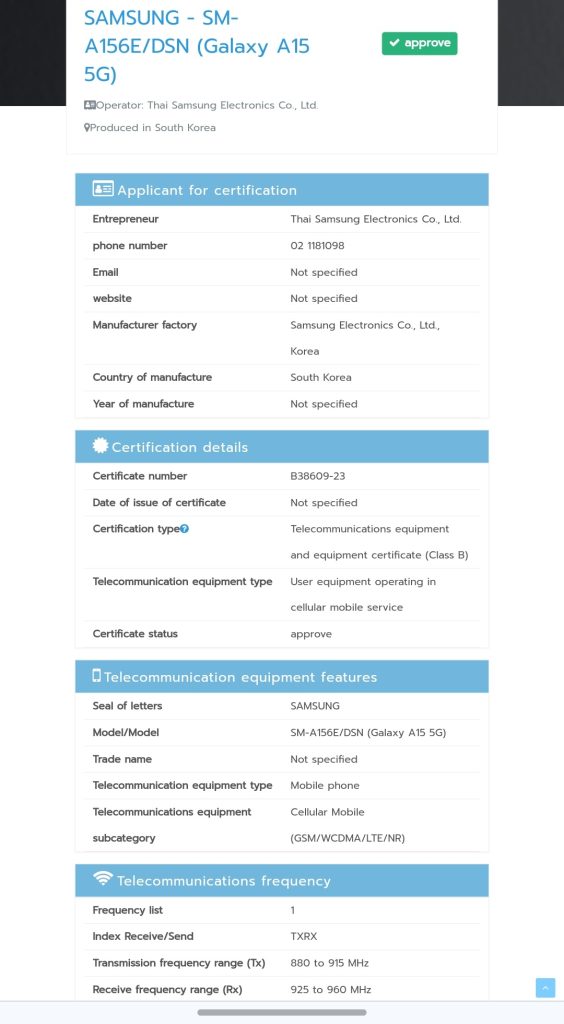 Further, the Samsung Galaxy A15 5G smartphone appeared on the IMDA confirming NFC support. It’s appearance on NBTC with model code SM-A156E also confirms the the upcoming launch in Thailand. These multiple certifications hint towards the official announcement in the next few days.