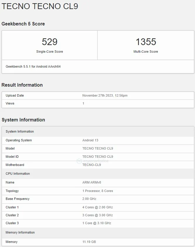 On the other hand, the GeekBench sighting offers quite a bit of information regarding the upcoming handset. The smartphone was in the popular benchmarking platform with the MediaTek Dimensity 8200 SoC. This processor is paired with 12GB of RAM. The device will also run on Android 13 OS based HiOS out of the box. With these specs, the Tecno Camon 30 Premier 5G managed to score 529 points in the single core test and 1355 points in the multi core test.