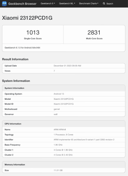 The Geekbench listing reveals that the Poco X6 scored 1013 in the single-core test and 2865 in the multi-core test. It also confirms that the phone will be powered by an octa-core processor with a maximum CPU clock speed of 2.40GHz.