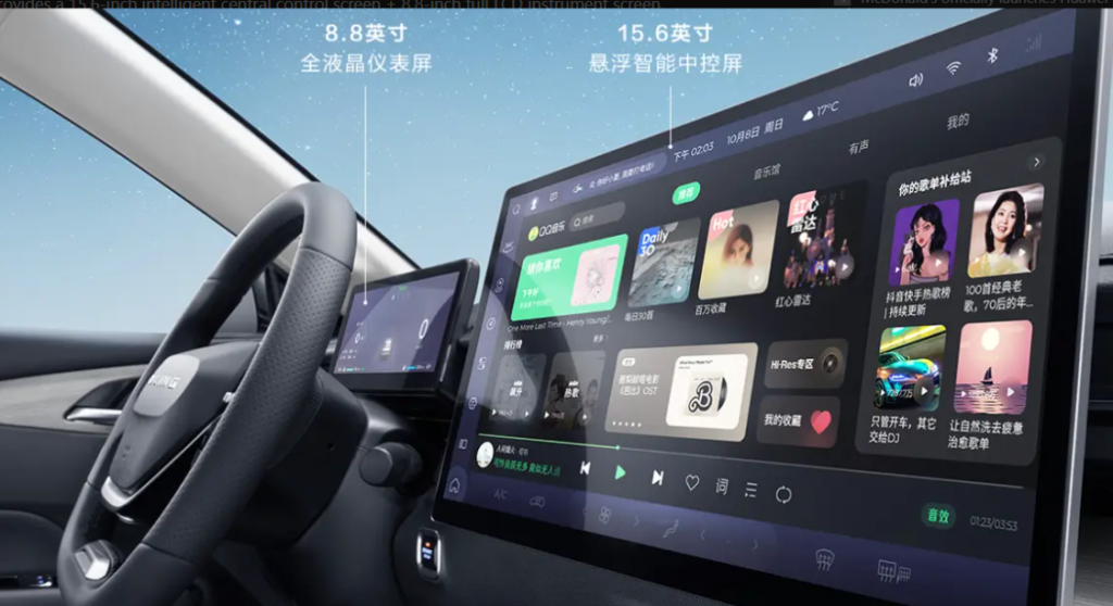 Inside Starlight, an emphasis on comfort and technology is evident. The sedan offers a modern and luxurious experience with two interior options: dark black and quicksand color. The dual suspension screen design includes a 10.1-inch floating intelligent central control screen and a 7-inch full LCD instrument screen in the standard version. The advanced version boasts a 15.6-inch intelligent central control screen and an 8.8-inch full LCD instrument screen, providing an enhanced user interface.
