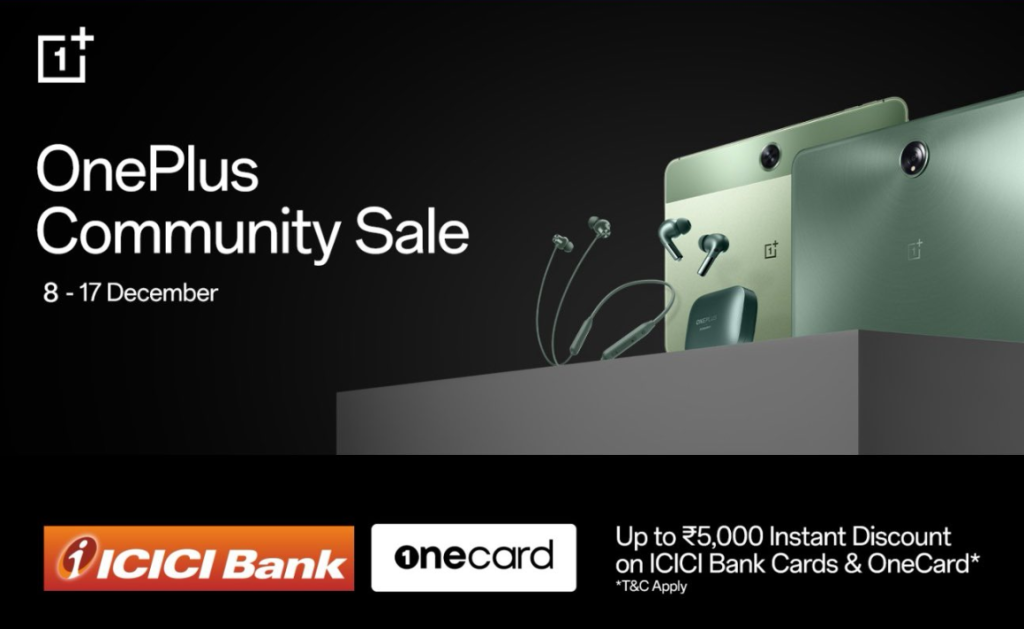 The OnePlus Community Sale is now live in India with discounts on accessories and tablets. The sale will be live till December 17 and is especially sweet for ICICI Bank and OneCard users. Here are the details.