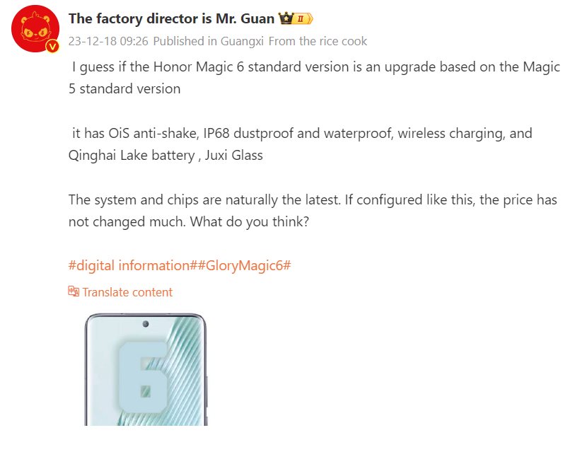 - Honor Magic 6 Pro key specifications emerge ahead of expected January launch