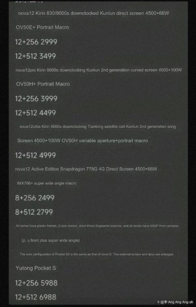 For budget-conscious users, there’s also a Lite (Vitality) model in the Nova 12 series. Reportedly, it offers a Snapdragon 778G 4G processor, a 4500mAh battery with 66W charging, and an IMX766 main camera with a wide-angle setup. This affordable option is rumored to come in at 2499 yuan and 2799 yuan for the 8/256GB and 8/512GB versions respectively.