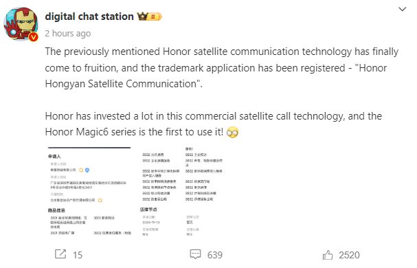 The new information reveals that Honor has applied for the “Honor Hongyan” trademark for satellite communication with the authorities. As reported by the Digital Chat Station on Weibo, it could debut via the upcoming Honor Magic 6. There are few details available at the moment about the new feature. However, we expect more information in the coming time.