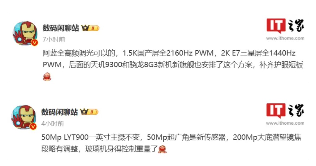 DCS has not explicitly revealed the names of the upcoming Vivo flagship phones. As per the tipster, one device will feature a 1.5K display with 2160Hz PWM high-frequency dimming whereas the other will have a 2K Samsung E7 panel with 1440Hz PWM dimming. These two devices are expected to be the Vivo X100s and X100 Pro+. DCS also adds that the upcoming Vivo flagship will feature a 50MP Sony LYT 900 1-inch main sensor, a 50MP ultra-wide-angle lens, and a 200MP periscope unit.
