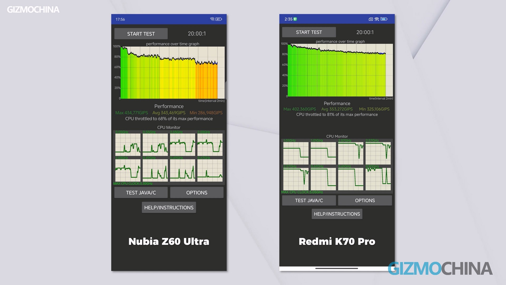Everyone knows that phones with good cameras don’t usually perform well. But the Z60 Ultra is an exception. Since Redmagic and Nubia are brothers, it makes sense that the Z60 Ultra is a strong performer. While the CPU Throttle Test scores don’t look as good as the K70 Pro’s, the maximum and average performance are both stronger.