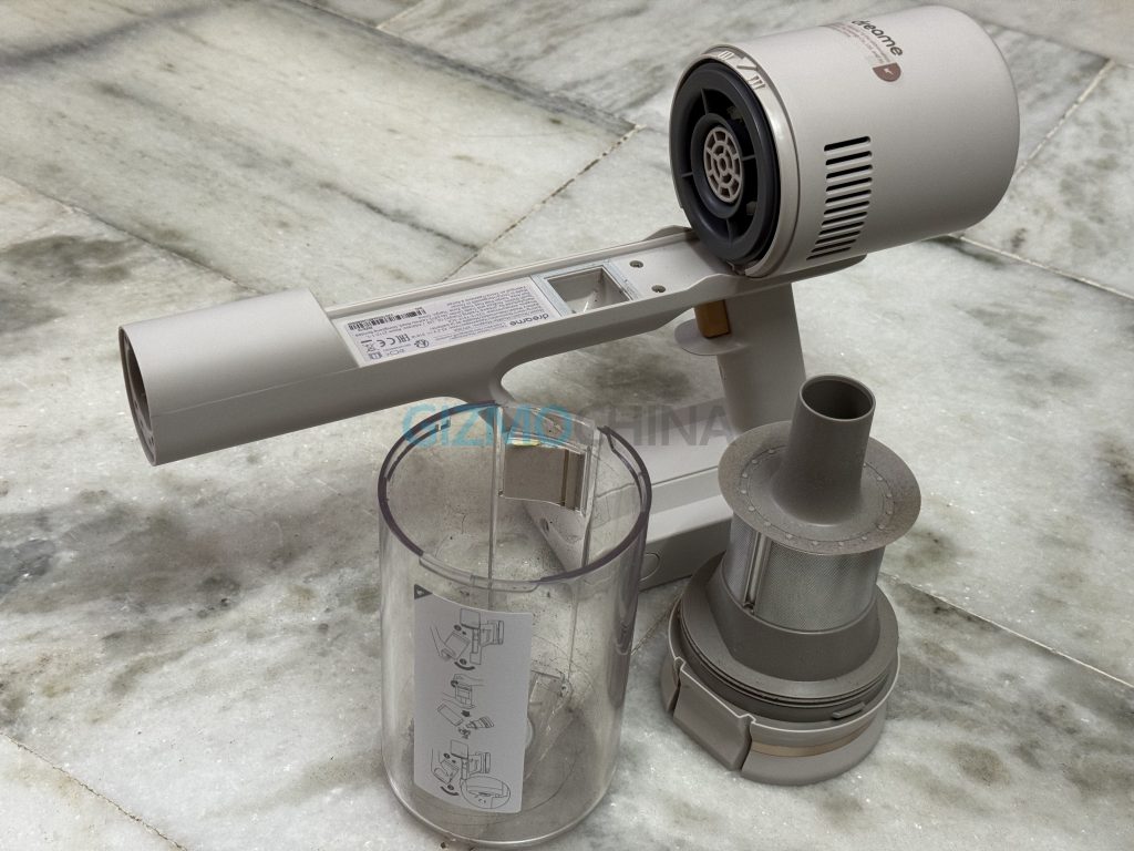 The main device includes a 0.5-litre dust cup, which can be easily removed for emptying and washing. Its battery is also detachable, allowing it to be charged separately with the provided small charger.