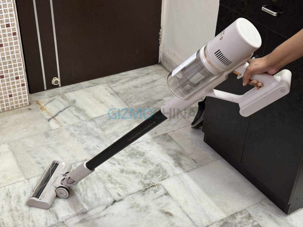 At the heart of the Dreame U10 is a high-speed brushless motor operating at 100,000 rpm and offering 100AW suction power. It comes with three power modes, which can be switched using the button present on the backside of the U10. I found the suction powerful enough to pull up dust, dirt, and debris.