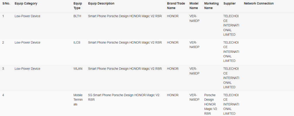 Spotted on the IMDA certification website, the Honor Magic V2 RSR Porsche Design, listed under the model number VER-N49DP, indicates that Honor is considering a wider release. While an official confirmation is still pending, the device’s existing debut in China provides us with a detailed look at its specifications.