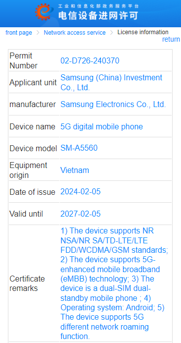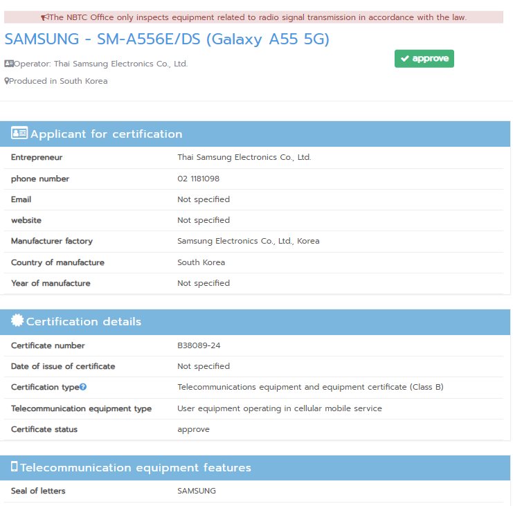 Samsung is set to renew its whole mid-range smartphone fleet with the launch of several new smartphones, including the Galaxy A55, Galaxy A35, Galaxy M55, Galaxy F55, and several others. Most of the upcoming Samsung smartphones are making the rounds on public certification websites across the globe. The Samsung Galaxy A55 and Galaxy A45 have already appeared on BIS India, Bluetooth SIG, FCC, Indonesia’s TKDN, and Korea’s NRRA. Moving a step ahead, the Galaxy A55 5G has made it to Indonesia’s NBTC and China’s MIIT certification with model codes SM-A556E and SM-A5560, respectively.