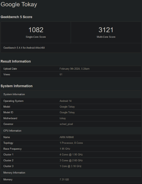 The listing surfaced on Geekbench under the device codenamed “Google Tokay.” It’s uncertain which smartphone exactly the “Tokay” is; possibilities include the Pixel 9, 9 Pro, or the recently leaked Pixel Fold 2.