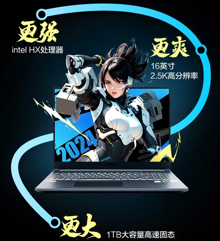 The Aurora Pro 2024 features a stunning 16-inch 2560×1600 resolution display with a blazing-fast 165Hz refresh rate, ensuring smooth and immersive gaming experiences. The screen also supports 500nits brightness, 100% sRGB color gamut, DC dimming, and ΔE < 2, delivering vibrant visuals with remarkable accuracy. Equipped with a 140W full-power RTX 4060 graphics card and dual copper tube fans, the notebook offers exceptional graphics performance and efficient heat dissipation.