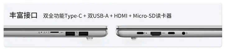 Furthermore, its comprehensive range of interfaces, including USB-C, USB-A, Micro-SD card reader, 3.5mm audio interface, and HDMI interface, offers versatile connectivity options for various devices and peripherals.