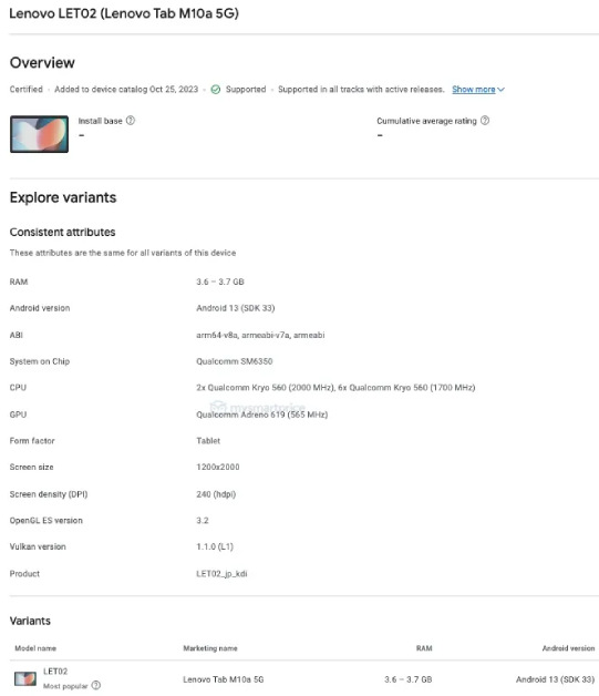 Based on the Google Play Listing, it appears that the Tab M10a 5G will share similar features with last year’s Lenovo Tab M10 5G, albeit possibly with some minor differences.