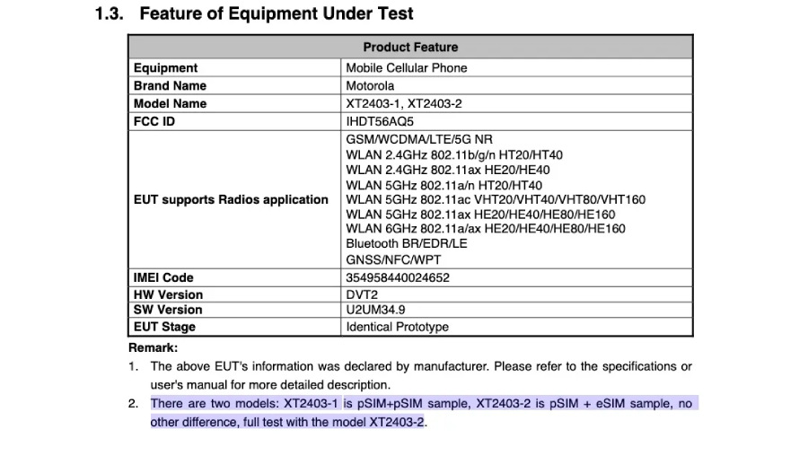 Though their marketing names are yet to be revealed, their similarity to the Edge 50 Pro’s TRDA model number suggests these could be different variants of the same device. The FCC certification also reveals that the device with XT2403-2 model number has E-SIM support.