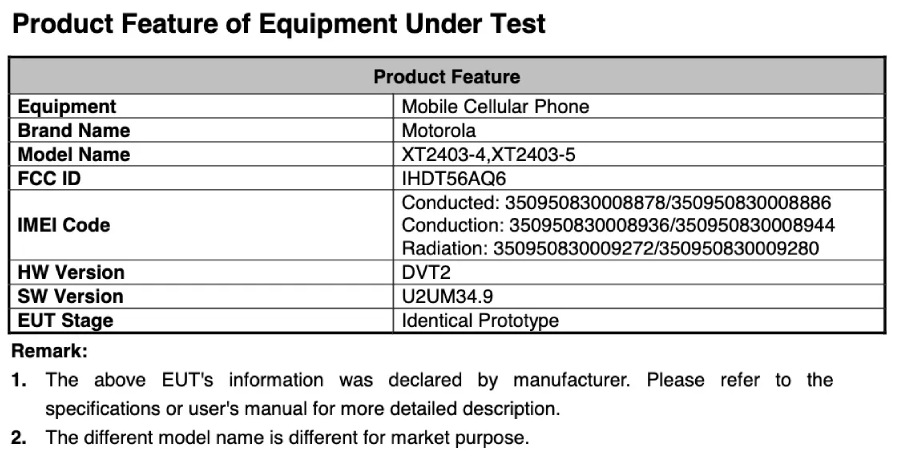 Additionally, the FCC certification website has given the green light to several Motorola smartphones with model numbers XT2403-1, XT2403-2, XT2403-4, and XT2403-5.