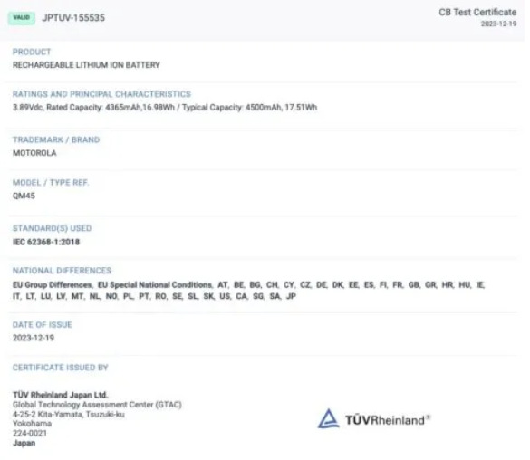 Additionally, Motorola has also registered the possible Edge 50 series accessories on the TUV Rheinland website. These include a 50W wireless charger, wired chargers capable of up to 125W, and a 4,500mAh battery.