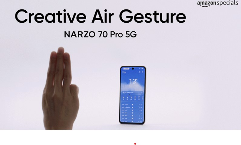 Realme is gearing up to launch the Realme 12 and 12+ 5G smartphones in India on March 6. The brand is also set to launch the Narzo 70 Pro 5G smartphone in the country later this month. Realme has started teasing the key details of the upcoming offering. Now, the company has confirmed that the Narzo 70 Pro 5G will have a unique feature that is mostly found in a few premium flagships. It will come with creative air gesture support that will let users to control certain functions without touching the screen.