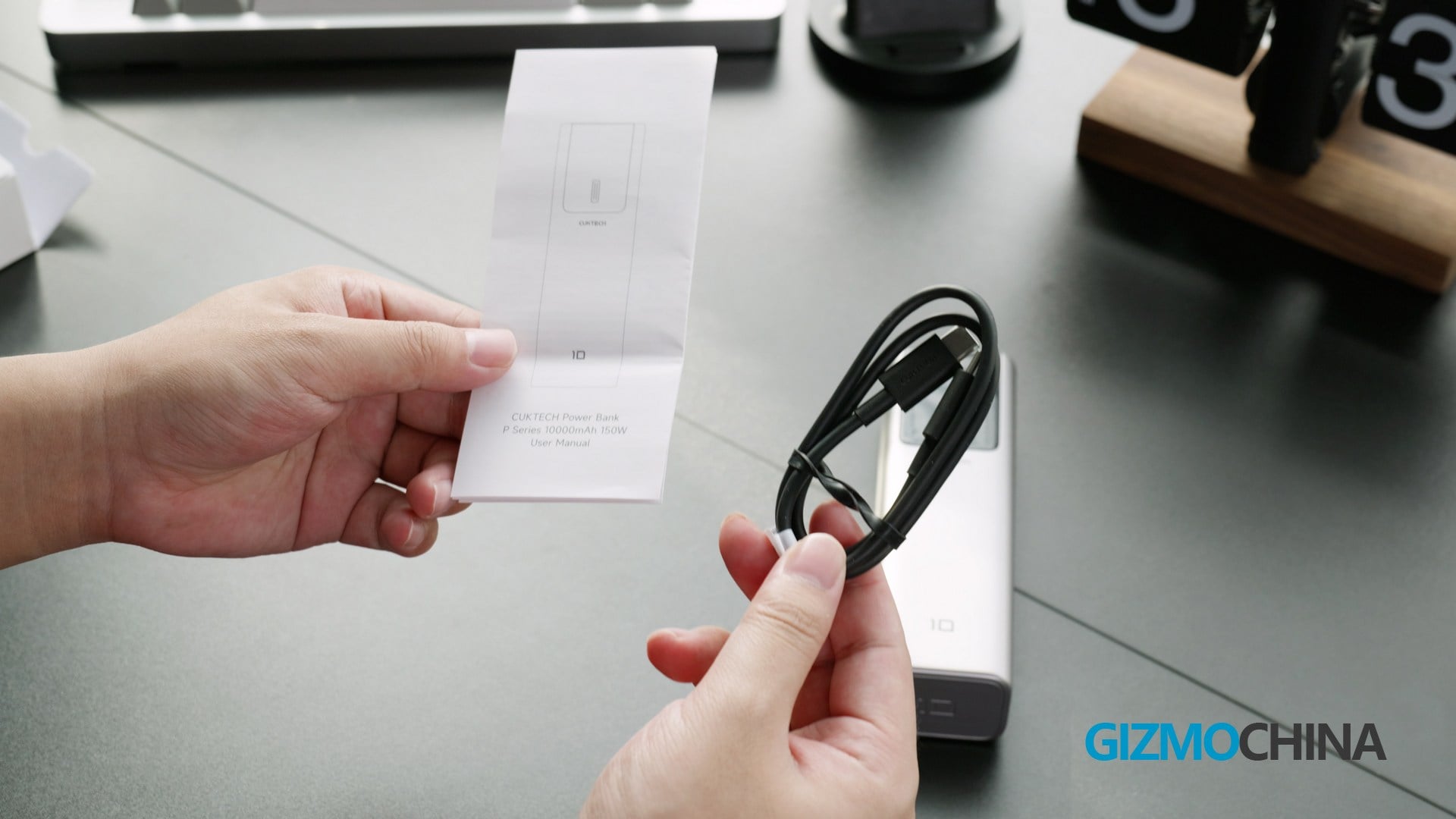 The CUKTECH 10 Power Bank comes in a simple black package that contains the Power Bank, User Manual, and a 6A cable.