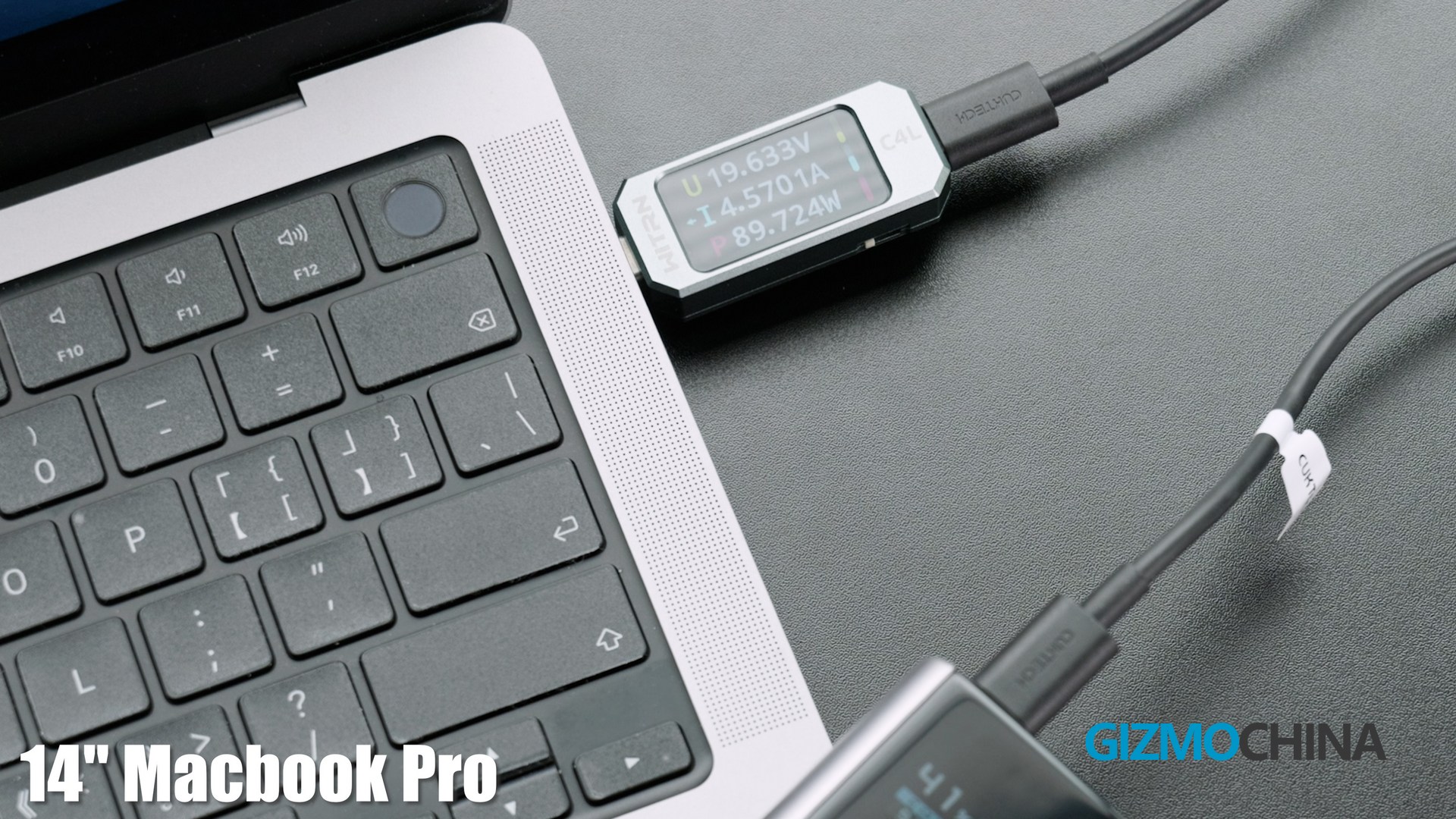 In addition, since CUKTECH 10 Power Bank supports 100W PD Protocol, it can also juice up laptops. Here we selected a 14-inch Macbook Pro with the power bank for the test, you can see the output power here.