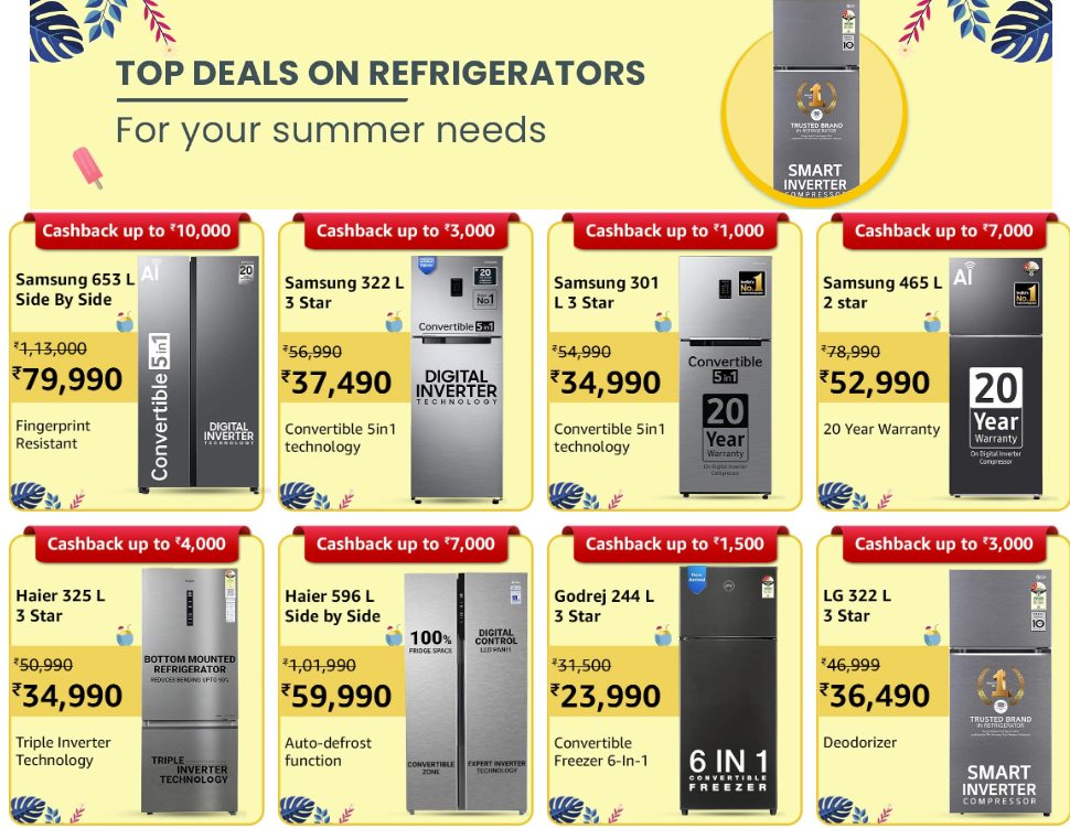 Apart from Air Conditioners, Refrigerators are also on sale, ranging from single-door to double-door and side-by-side refrigerators featuring some new digital inverter technology. The users can avail of discounts of up to 55% on the refrigerators, and there are also 65% discounts on the last year’s models. Below are some other discounts that you can enjoy by heading to the sale page.