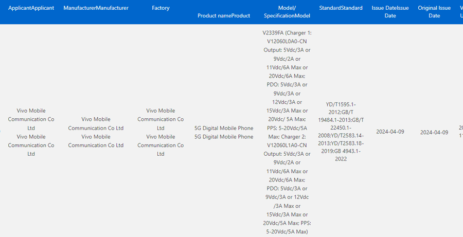 According to the V2339FA device’s 3C certification, it may ship with a 120W fast charger. Unfortunately, nothing else is known about the device.neo
