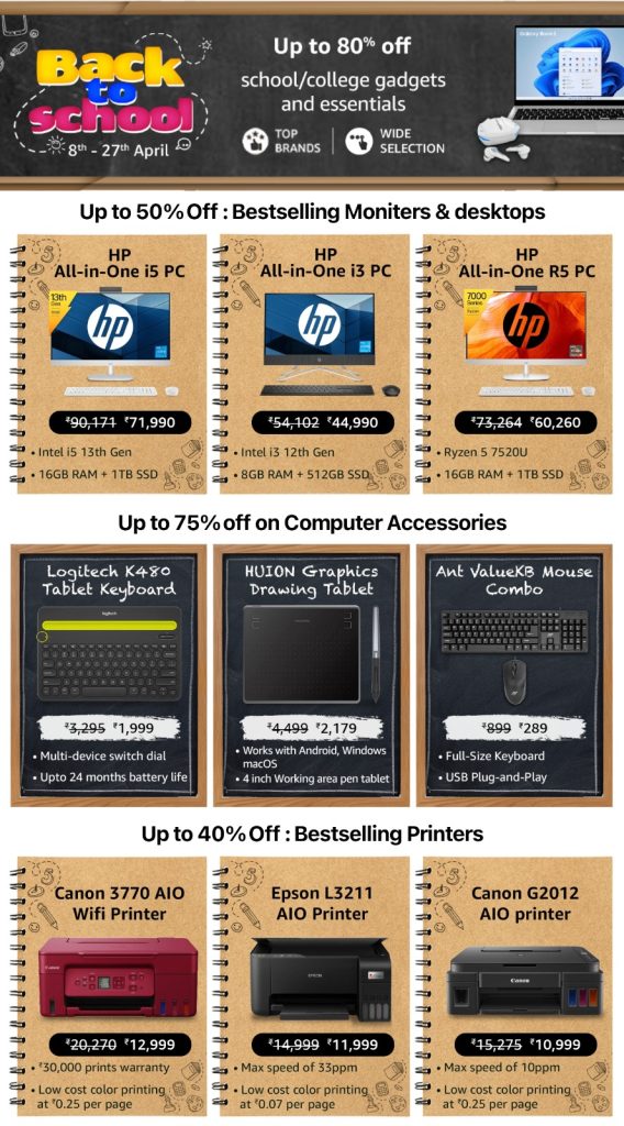 New Sessions for students have begun, and to make the most, Amazon is offering up to 80% discounts on the essentials required for school and college students. This Back to School sale on Amazon is live till April 27, and interested users can grab good discounts on Printers, Laptops, Computer Accessories, Monitors, and Desktops. Below are detailed deals on colored printers which would be useful for printing projects, and other holiday homework.