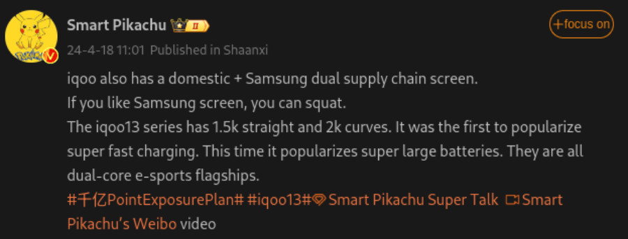That’s the same display setup as the iQOO 12 line. So there seems no major change on this front. The leak further suggests that both models could use displays sourced from Samsung and domestic Chinese display manufacturers, likely BOE.