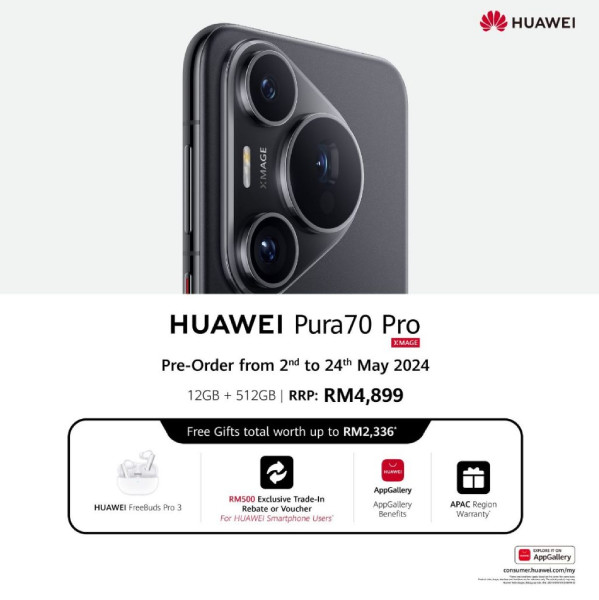 Pre-orders for the Huawei Pura 70 series are open in Malaysia from May 2nd to May 24th, 2024. Customers can pre-order by placing a non-refundable deposit of RM70 on Huawei Malaysia’s website or at Huawei Experience Stores.