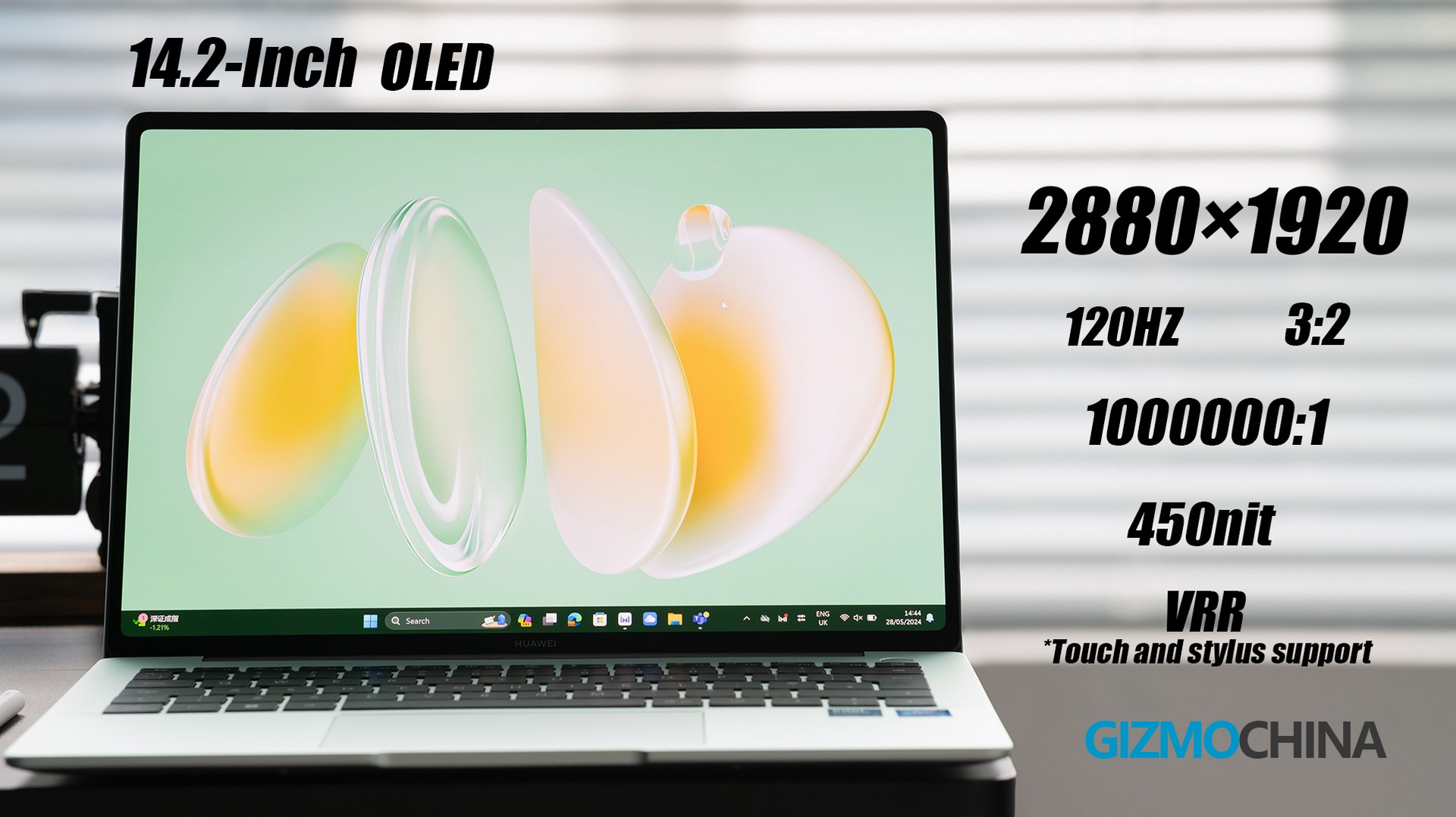 Opening the lid, the 14.2-inch OLED screen is truly stunning at first sight, as it has a small bezel for all the edges. HUAWEI officially claimed that it has a 91% screen-to-body ratio.