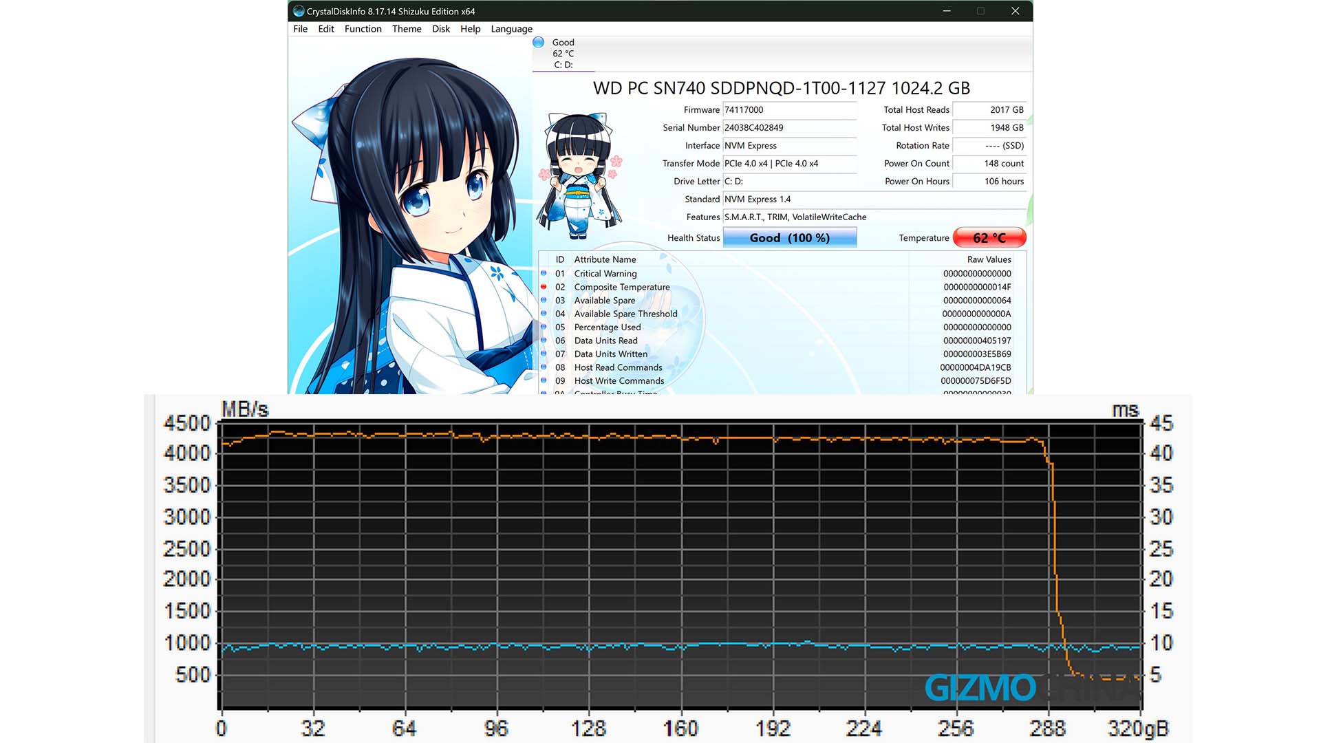 - Built-in SSD SN740 has great transfer speed and temperature
