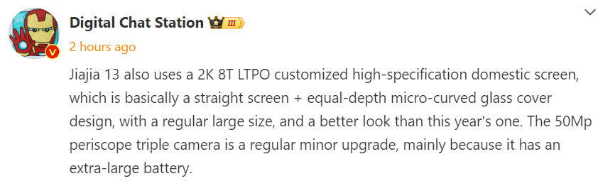 According to DCS, the OnePlus 13 will feature a high-spec 2K 8T LTPO custom display, which is a top-tier domestic screen. A previous Weibo post by the same source revealed that the OP13 could be equipped with a 6.8-inch OLED screen. The design will include a nearly flat screen with a subtly curved glass cover, offering a conventionally large size with an improved visual experience compared to this year’s model.