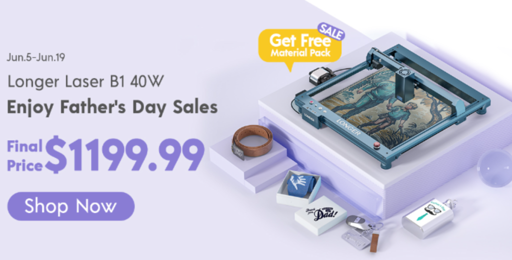 The LONGER Father’s Day Sale, running from June 5th to June 19th, offers substantial discounts on the Longer Laser B1 40W. With potential savings of up to $1020 and up to 59% off on the Pro Max Set, this sale is a fantastic opportunity to give your father a memorable gift that demonstrates your genuine appreciation.
