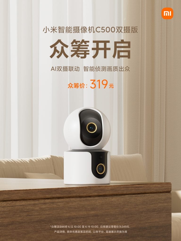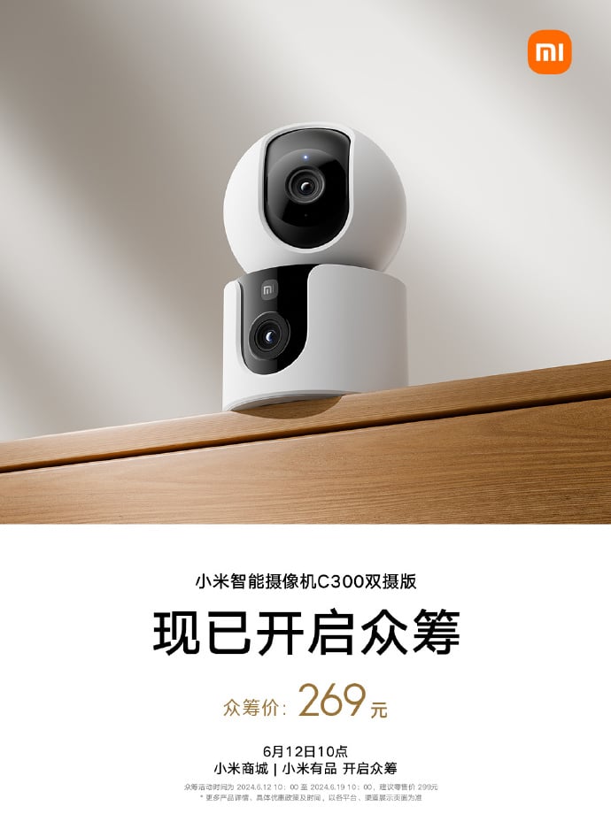 Xiaomi Smart Camera C300 will be available for sale between June 12 and June 19 at a price of 269 CNY, after that the price will increase to 299 CNY. The C500 will be on pre-sale from June 12 to June 19, and after the pre-sale period ends, its price will rise from 319 CNY to 349 CNY.