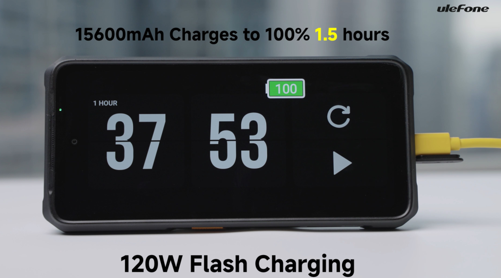 The standout feature of the Armor 26 Ultra is its colossal 15600mAh battery, which promises unparalleled battery performance. According to the recent battery life test video released by Ulefone, the Armor 26 Ultra consumes only 3% of its battery during 30 minutes of gaming and just 2% during 30 minutes of video streaming. This incredible efficiency ensures that users can stay connected and powered up throughout the day without the constant need for recharging. Additionally, the 120W flash charging technology allows the massive battery to be fully charged in just 1.5 hours, a feat that sets the Armor 26 Ultra apart in the smartphone market.