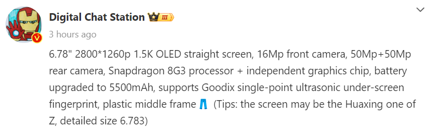 According to DCS’ latest leak and other reports, the iQOO Neo 9S Pro+ will have a 6.78-inch OLED screen that will offer a 1.5K resolution, a 144Hz refresh rate, and an ultrasonic in-display fingerprint sensor. A dedicated graphics chip will power the screen for an enhanced gaming experience.